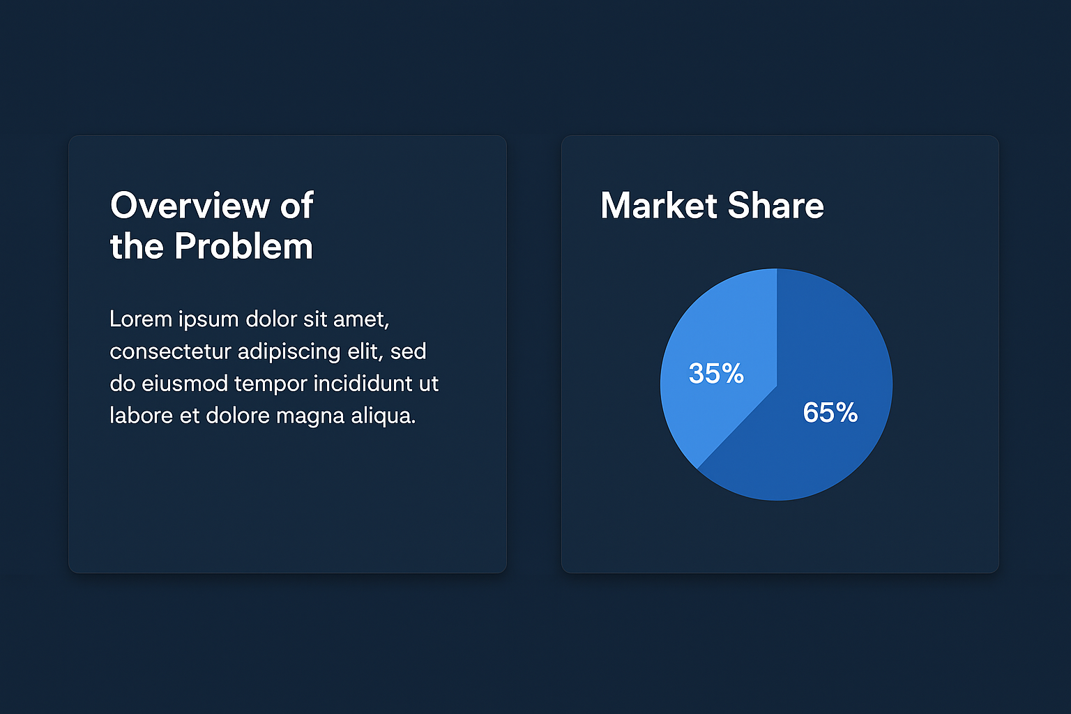 - Includes sections for problem framing, market share, solution overview, business impact, funding ask and project timeline