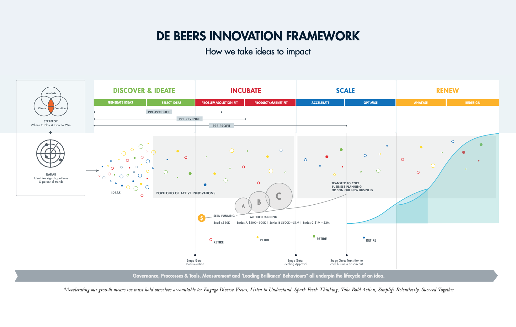 We designed a bespoke Innovation Framework tailored to De Beers’ strategic priorities and operational realities.