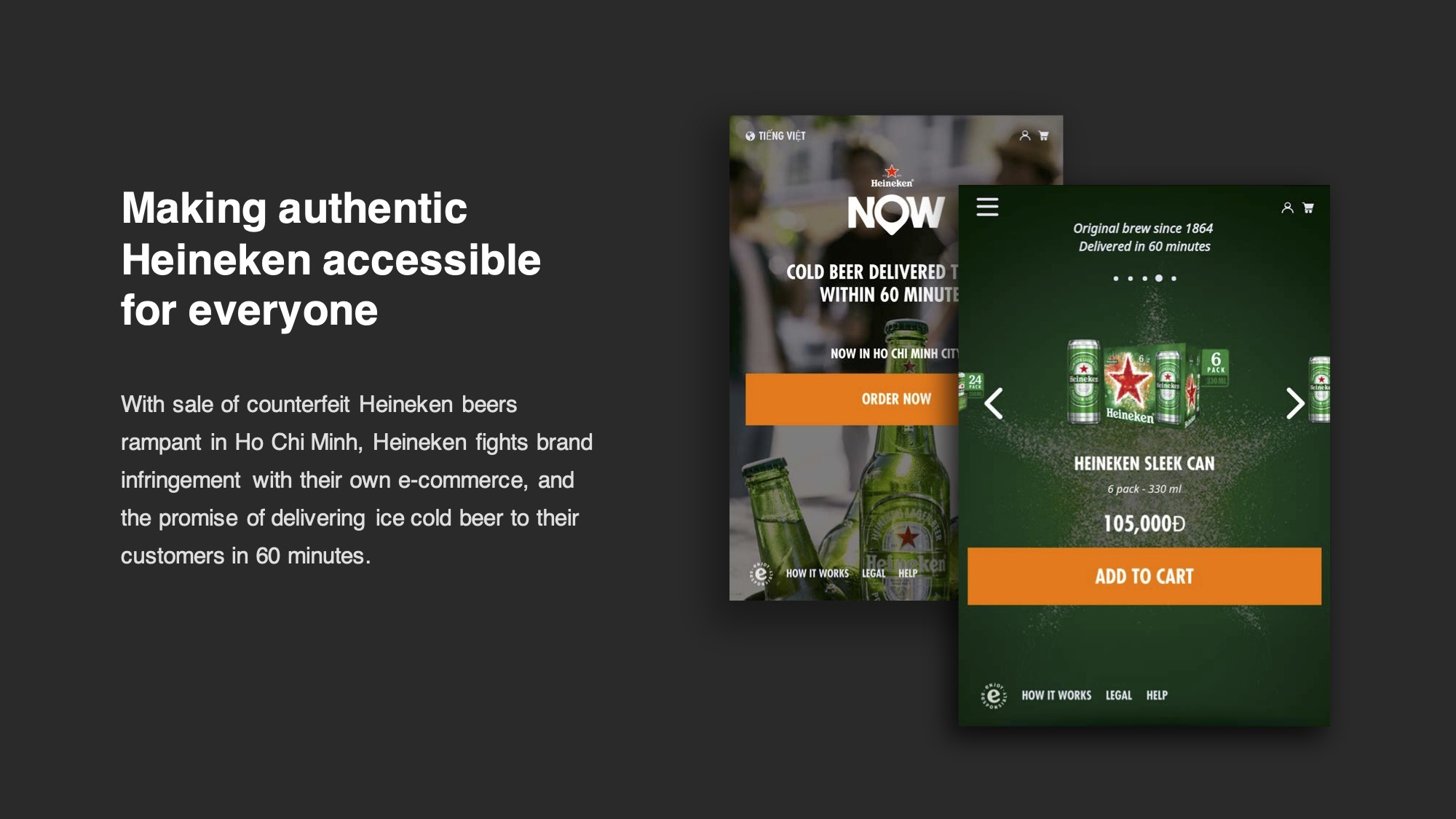 To address this, Heineken launched its own e-commerce platform, promising to deliver authentic, ice-cold beer to customers within 60 minutes.