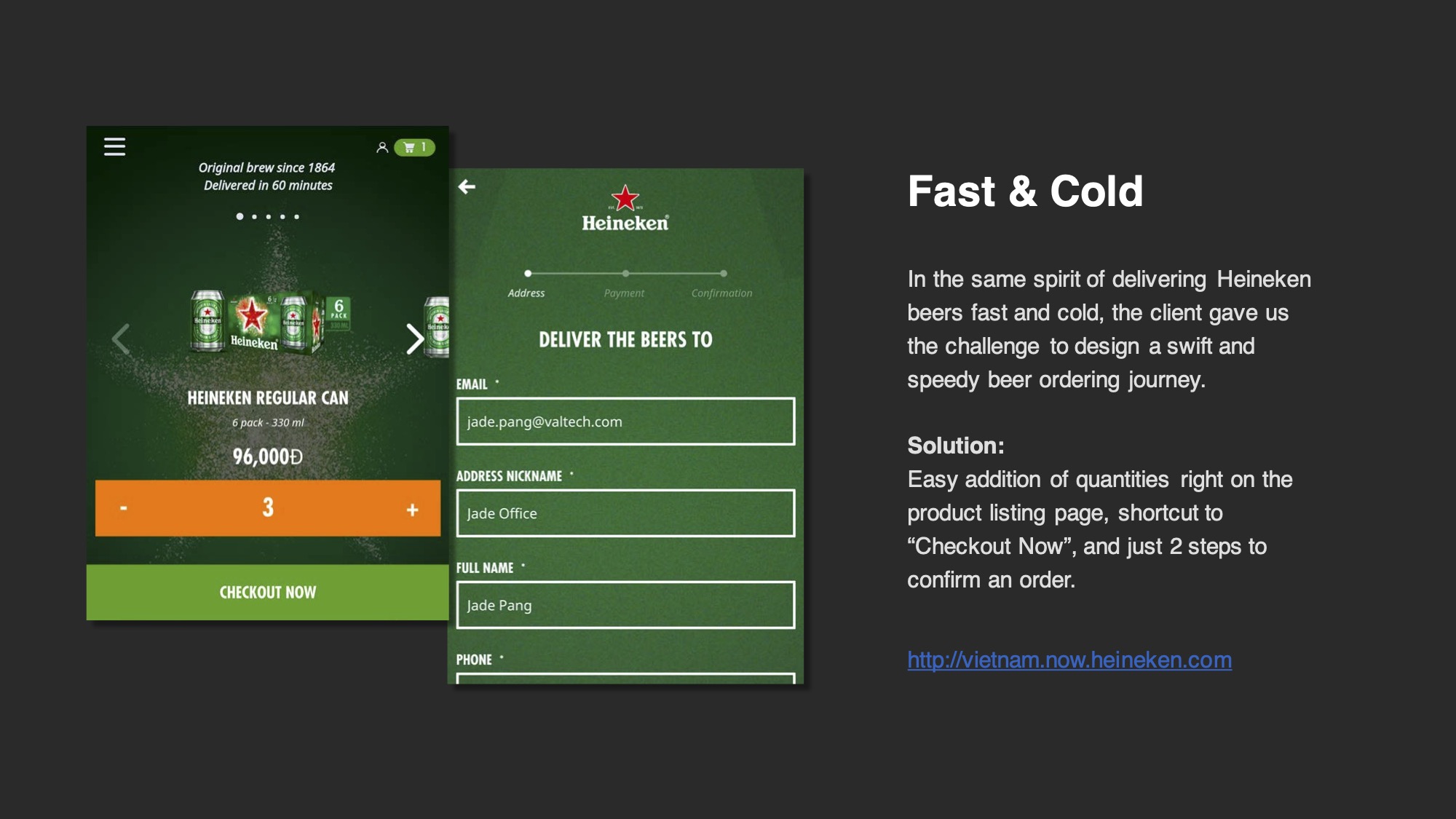 In the spirit of Heineken’s “fast and cold” promise, the UX was built around speed, clarity, and minimal friction: